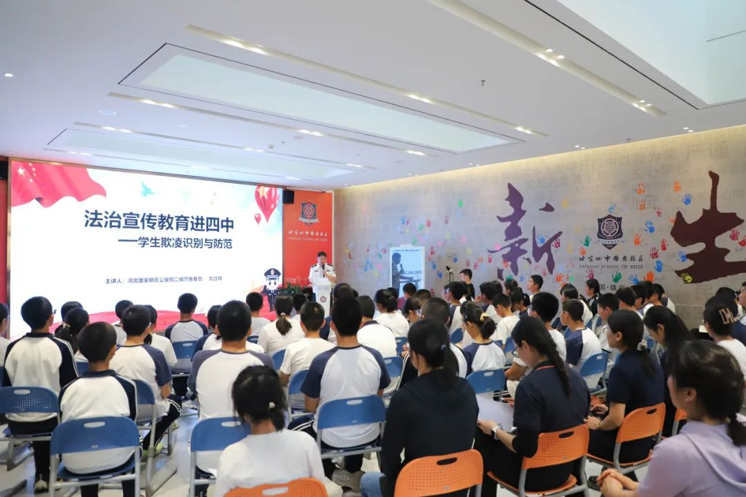 5月20日,河北雄安新区公安局二级警务专员、北京四中雄安校区法治副校长刘立祥将法治宣传教育带进四中校园,他深入浅出的为全体师生讲解了如何识别、应对及防范学生欺凌,为学生健康成长撑起强有力的“保护伞”。